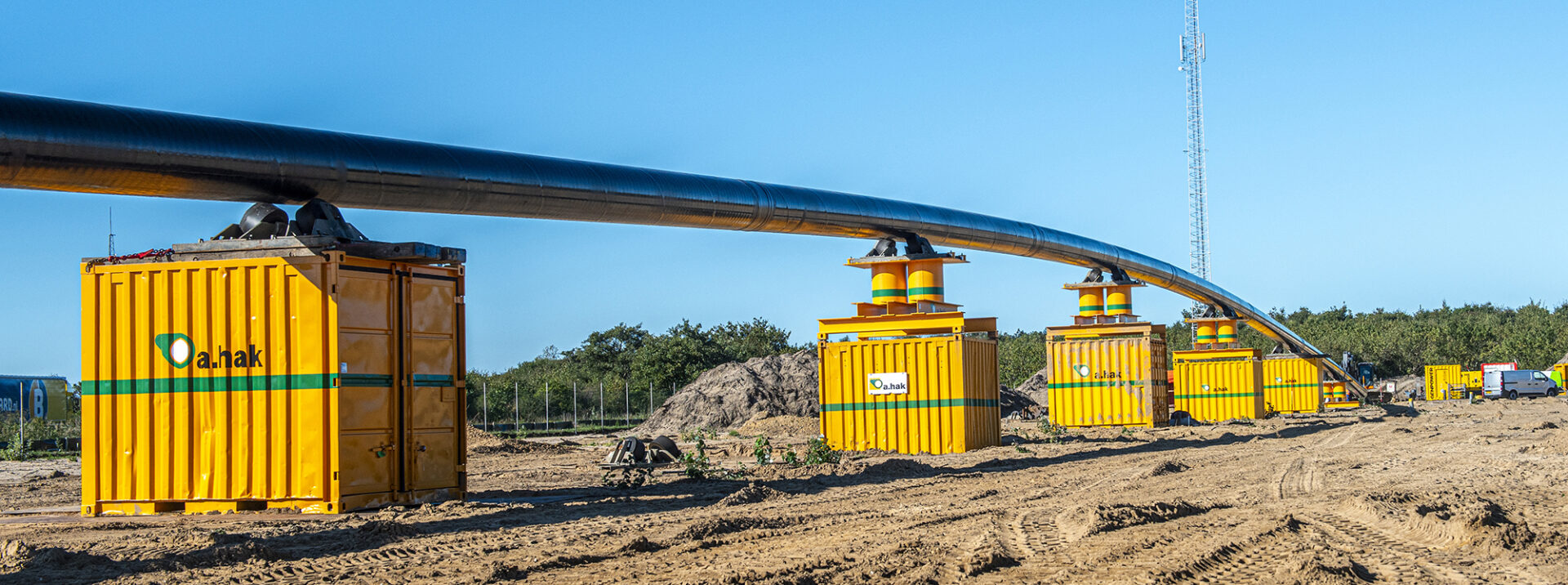 A first for A.Hak and client PWN. At the end of October, they completed a fully electric controlled drilling for a drinking water transport pipeline through the dunes at Wijk aan Zee. The pipeline, with a length of 1 kilometer, connects the PWN production site Jan Lagrand in Heemskerk with the drinking water production site Wim Mensink in Wijk aan Zee. Among other reasons, due to the protected dune area, the drilling had to be emission-free. “Fortunately, we had plenty of preparation time,” Nick Verboven reflects. “Because it was quite a challenge to arrange all the necessary electric equipment.”