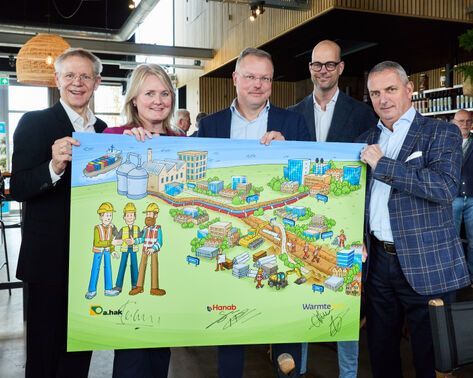 Den Haag - WarmtelinQ en de aannemers A.Hak en Hanab Pipelines & Industry tekenen vandaag het contract voor de aanleg van de warmtetransportleiding tussen Rijswijk en Leiden. De aanleg van dit tracé is een grote stap voorwaarts in de warmtetransitie in dit deel van Zuid-Holland.